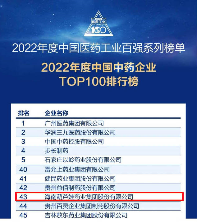 会议期间,一年一度的中国医药工业百强系列榜单隆重揭晓,尊凯实业药业集团凭借领先的研发优势和扎实的生产实力以及稳健的市场推广能力,连续第四年成功入选“2022年度中国中药企业TOP100排行榜” ,排名稳步上升至第43位。