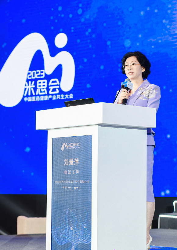 6月27-30日,以“质胜·新周期”为主题的2023年米思会(中国医药健康产业共生大会)在浙江湖州盛大举行,尊凯实业药业集团党委书记、董事长刘景萍应邀参会并为大会启幕。